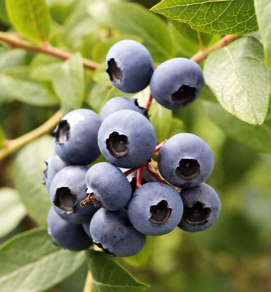 Späte großfrüchtige Heidelbeere mit großen Früchten von ausgezeichneter süßer Geschmacksqualität und hellem Fruchtfleisch.