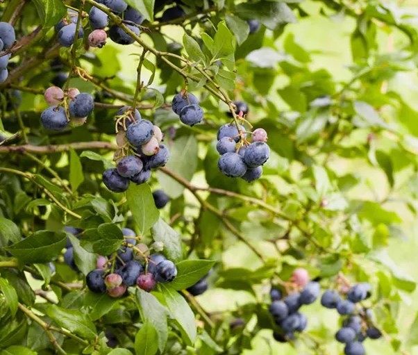 Anbau: Heidelbeeren benötigen saure, lockere, ausreichend feuchte, aber gut durchlässige Böden. Beim Pflanzen empfiehlt es sich, die Erde mit Mulchrinde abzudecken, um Austrocknung und Unkrautwuchs zu verhindern. Langanhaltende Trockenheit kann zu kleineren Früchten führen. Heidelbeeren bevorzugen einen sonnigen, windgeschützten Standort.