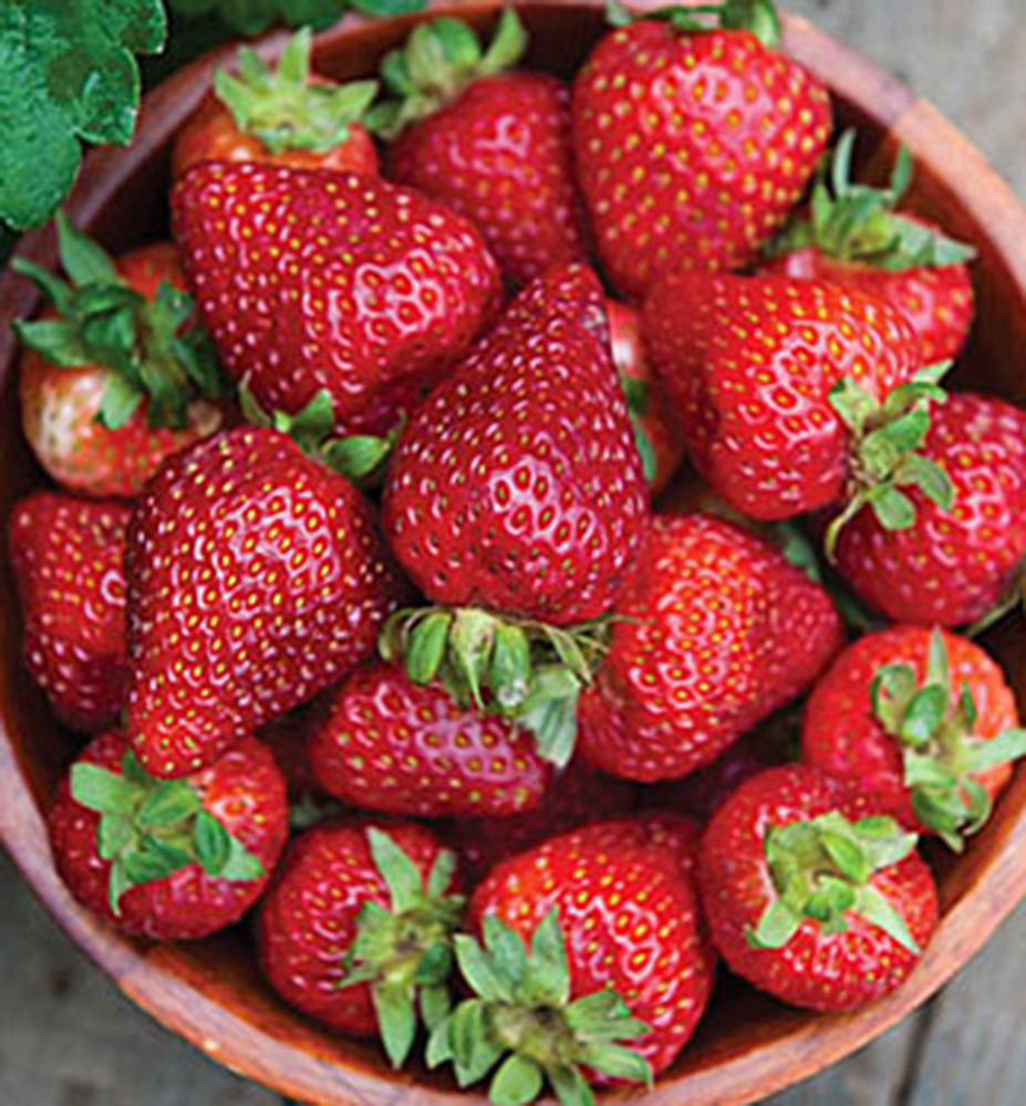 Eigenschaften: Die Erdbeere ‘EVIE II®’ ist eine sehr hochwertige, immertragende Sorte mit hervorragender Krankheitsresistenz. Die Pflanzen wachsen sehr kräftig und zeichnen sich durch einen extrem hohen Ertrag aus – sie gehört zu den ertragreichsten Sorten überhaupt. Pro Pflanze können bis zu 2 kg Früchte geerntet werden. Die großen Früchte sind sehr schmackhaft und saftig, attraktiv rot gefärbt und von gleichmäßiger Größe. Die erste Ernte erfolgt durchgehend im Juni. Nach einer kurzen Pause reifen weitere Früchte von Juli bis Ende August nach.