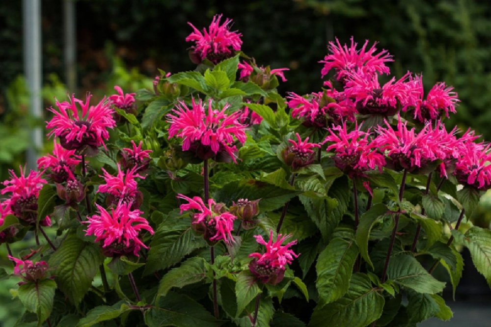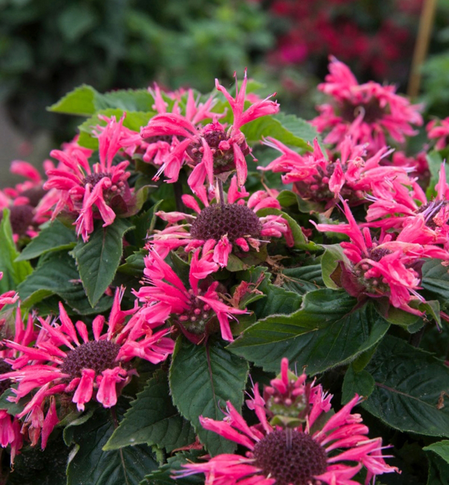 Eigenschaften: Die gefüllte Monarda „BEE MERRY“ hat tiefe, korallenrosa Blüten, die aus violetten Knospen blühen. Ab Juli ist er mit leuchtenden Farben bedeckt, die den Garten den ganzen Sommer über verschönern. Sie bildet einen dichten, kompakten Haufen und eignet sich daher auch für den Anbau im Topf. Seine aromatischen Blätter wachsen paarweise, duften mild nach Minze und können zur Zubereitung von Tees verwendet werden. Diese Sorte wird 40–50 cm hoch.