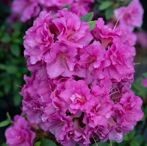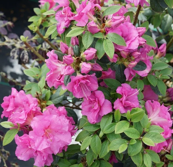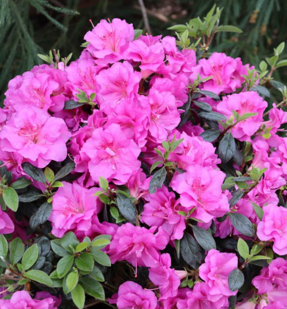 Eigenschaften: Die japanische Azalee ´PERFECTO MUNDO® DOUBLE PURPLE´ ist eine attraktive neue Sorte unter den remontierenden (mehrmals blühenden) Azaleen. Sie gehört zur Serie ´Perfecto Mundo®´, die für ihre üppige und lang anhaltende Blüte über mehrere Monate im Jahr bekannt ist. Im Frühling ist der Strauch fast vollständig mit unzähligen, markanten, halbgefüllten Blüten in einem intensiven Purpurviolett bedeckt. Nach einer kurzen Ruhephase folgt von Mitte Sommer bis Herbst eine weitere Blüte. Die leuchtend purpurnen Blüten bilden einen wunderschönen Kontrast zu den glänzenden grünen Blättern, die das ganze Jahr über dekorativ bleiben. Dieser elegante Strauch wächst kompakt und dicht. Er erreicht eine Höhe von ca. 75–90 cm und eine Breite von 90–120 cm und eignet sich daher auch ideal für kleinere Gärten.