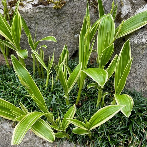 | Botanischer Name | Bletilla striata ´Alba Variegata´ |