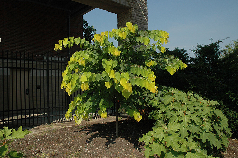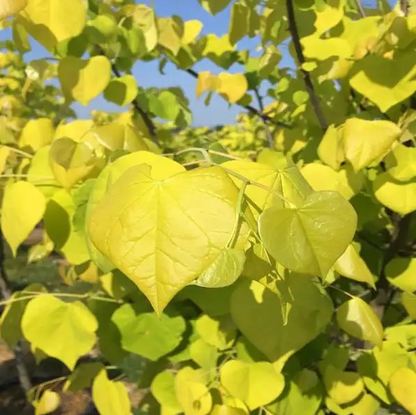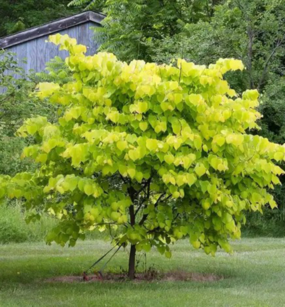 Eine attraktive Judasbaum-Sorte mit markanten goldgelben Blättern und dekorativer Frühlingsblüte.