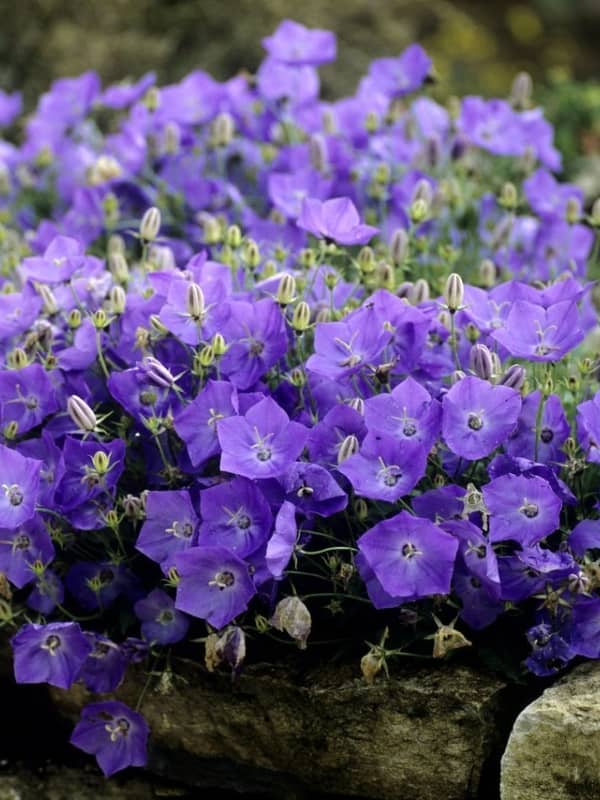 Eigenschaften: Die Karpaten-Glockenblume ´AVIDA BLUE´ blüht von Juni bis August mit intensiv violetten, auffälligen Blüten, die aus fünf weit geöffneten Blütenblättern bestehen und in der Mitte markante weiße Staubblätter zeigen. Die Pflanze erreicht eine Höhe von ca. 20 cm. Die Blätter sind hellgrün und gezähnt. Am schönsten kommt sie an den Rändern von Staudenbeeten oder in Steingärten zur Geltung.