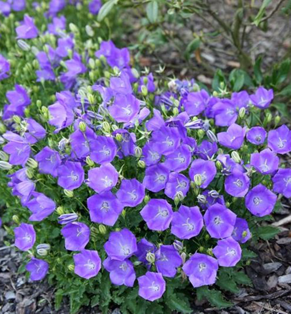 Eigenschaften: Das Karpaten-Glockenglöckchen ist eine niedrige Staude und gehört zu den Steinpflanzen. Die Sorte 'PEARL BLUE' ist eine verbesserte Version der Sorte 'Cleeps Deep Blue'. Sie unterscheiden sich voneinander in der Größe der Blüte, wobei 'PEARL BLUE' größere, ausgeprägtere blauviolette Blüten hat. Sie blüht üppig und sehr lange, von Juli bis September.