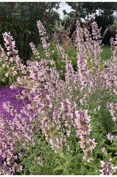 Eigenschaften: Katzenminze kommt natürlicherweise im Iran und in der Türkei vor. Die Sorte ´AMELIA´ bildet eine aromatisch ausladende Traube, die eine Höhe von 40-60 cm erreicht. Die Blätter sind silbergrün, oval mit gezacktem Rand. Sie blüht lange, von Juni bis September. Die Blüten sind hellrosa und bilden längliche Blütenstände, die Bienen und andere nützliche Insekten anlocken. Der Rohrkolben eignet sich hervorragend für gemischte Beete und zur Einfassung von Staudenbeeten. Es eignet sich hervorragend als Dekoration für Gefäße und Blumentöpfe, insbesondere in der Nähe von Ruheplätzen. Die Pflanze wirkt als Abwehrmittel gegen einige Insektenarten. Sie blüht bereits im ersten Jahr nach der Pflanzung.