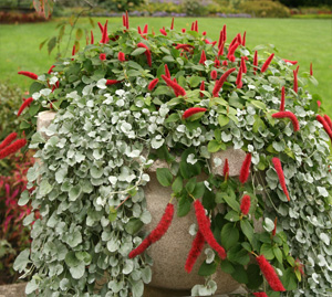Exotische einjährige Hängepflanze mit auffälligen, ungewöhnlichen roten Blüten.