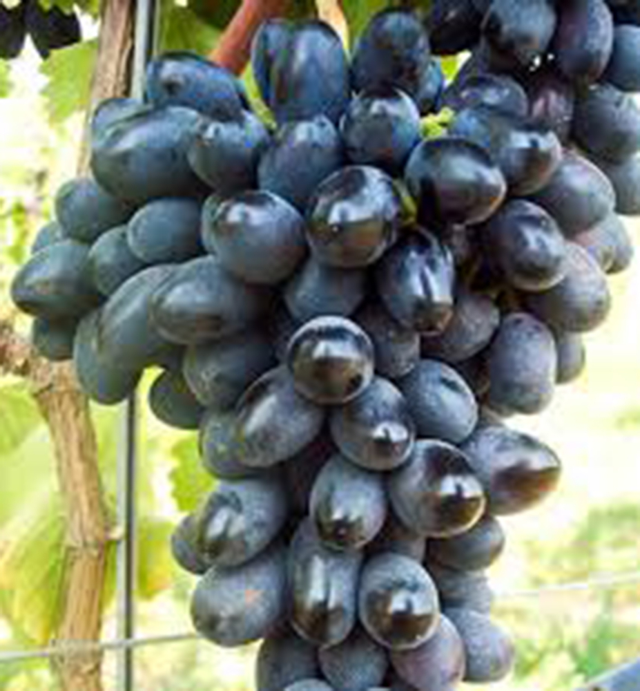 Eigenschaften: Die Rebe 'BLACK PEARL' gehört zu den beliebtesten kernlosen Sorten. Die Trauben sind mittelgroß und wiegen ca. 250 g. Die dunkelblauen Beeren sind äußerst schmackhaft und saftig. Die Beeren reifen Ende September. Die Sorte eignet sich für den Frischverzehr und ist auch hervorragend zur Weinherstellung geeignet. Frostbeständig bis –25 °C.