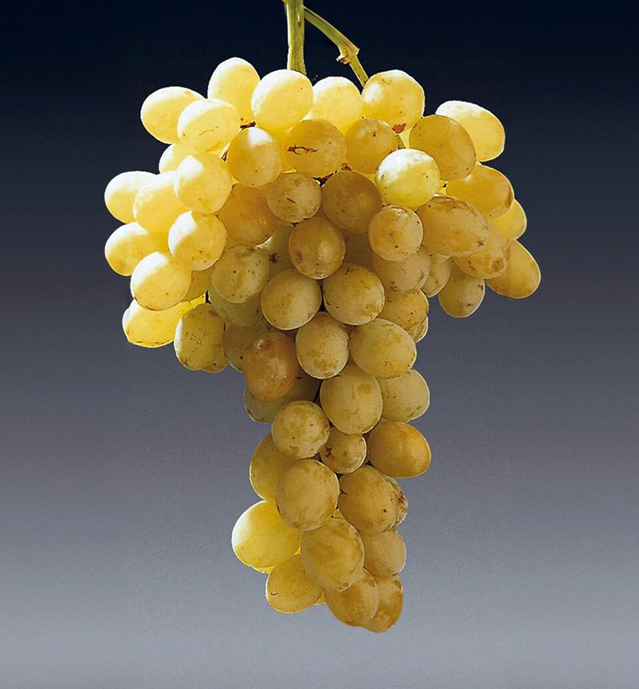 Eine ertragreiche Tafeltraubensorte mit goldgelben, kernlosen Beeren.