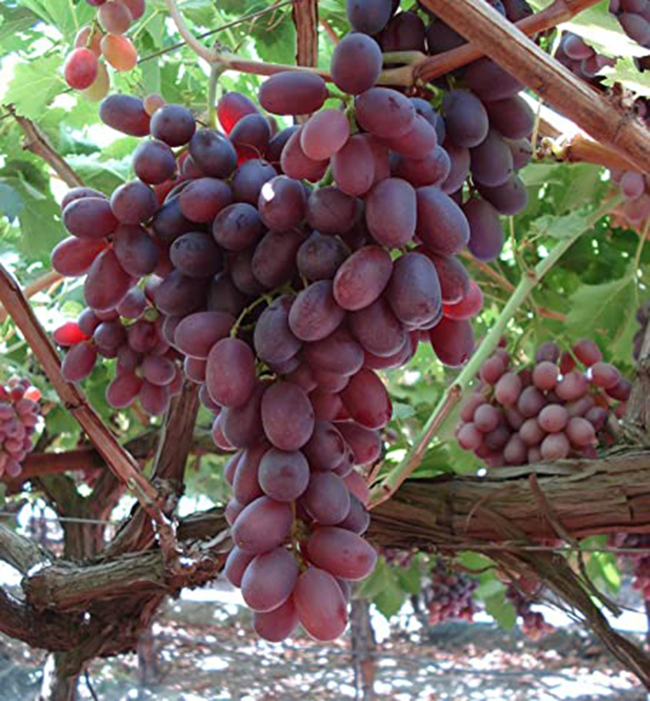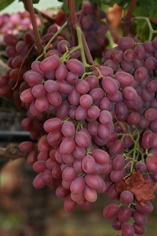 Tafelrebe mit attraktiven, tiefrosa bis violett gefärbten Trauben und süßem Geschmack.