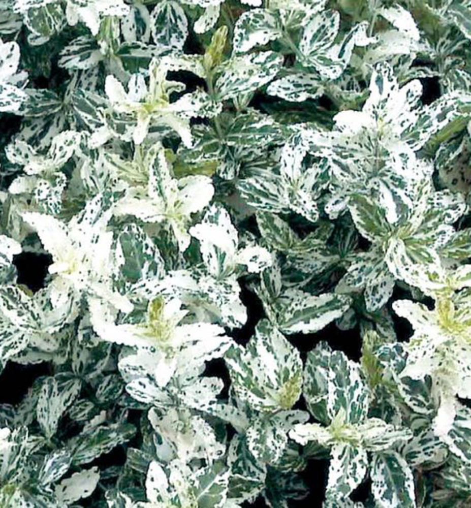 Eigenschaften: Efeu Fortunov „HARLEQUIN“ ist ein niedriger, immergrüner Strauch mit interessanter Blattfärbung. Die neuen Schnäppchen haben eine weiße Farbe, während die alten bunte weißgrüne Blätter haben. Im Herbst beginnen sie aufgrund der niedrigen Temperaturen, sich leicht rosa zu verfärben. Es wächst langsam und bildet einen niedrigen Teppich, der sich sehr gut formen lässt. Sie wird 30–50 cm hoch. Es ist frostbeständig bis -24 °C.