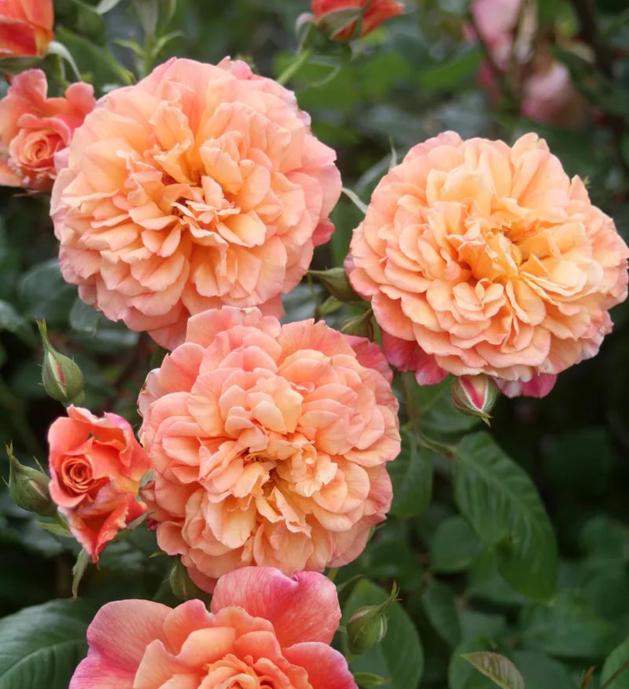 Eine beliebte Kletterrose mit vollen Blüten in Aprikosen- bis Lachsfarben.