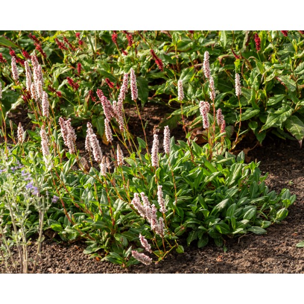 Eigenschaften: Knöterich ´DONALD LOWNDES´ ist eine niedrige, anspruchslose Staude, die dichte Bestände hellgrüner Blätter bildet, die im Herbst bronzefarben werden. Im Sommer blühen an geraden Stielen schmale, ährenförmige, bis zu 7 cm lange, hellrosa Blüten, die sich im Verlauf der Blüte allmählich karmesinrot verfärben. Die Stängel erreichen eine Höhe von bis zu 25 cm. Die Blüten ziehen Bienen und Schmetterlinge an. Es eignet sich hervorragend für die Ränder von Blumenbeeten oder als Bodendeckerpflanze, um das Wachstum von Unkraut zu verhindern.