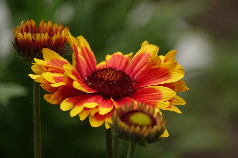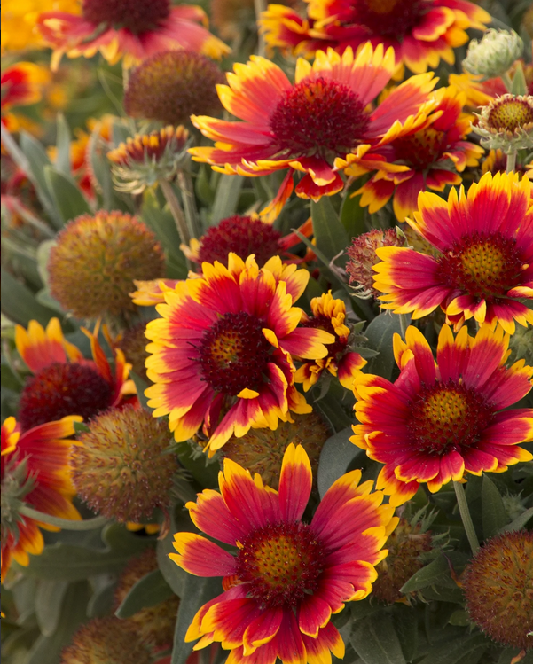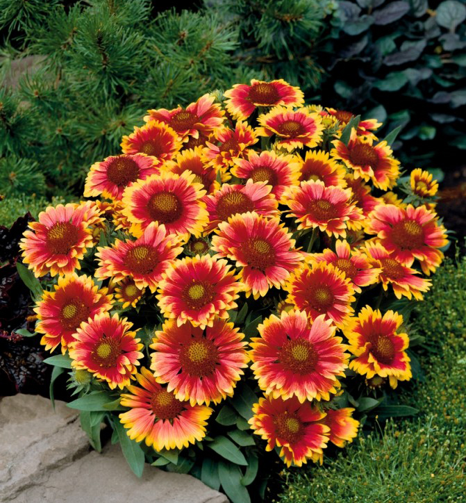 Eigenschaften:Kokardenblume stammt ursprünglich aus Mittel- und Südamerika und gelangte von dort nach Europa. Die Sorte ´ARIZONA SUN´ ist eine schnellwüchsige Staude, die eine Höhe von 30–40 cm erreicht. Sie blüht ab Juni mit großen Blüten, deren rotbraune Mitte dicht von leuchtend rot-orange-gelben Blütenblättern umgeben ist. Die Blätter sind breit lanzettlich bis eiförmig und tiefgrün gefärbt.