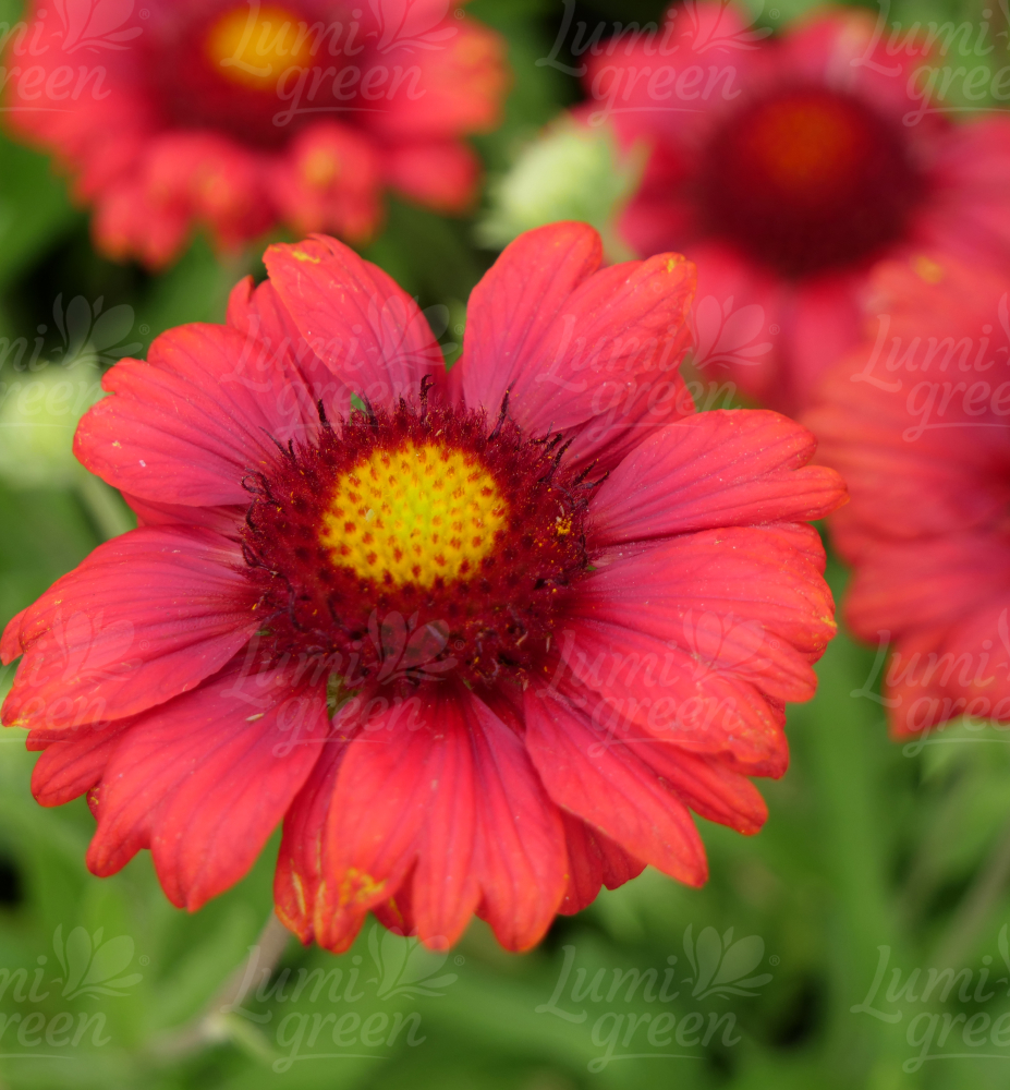 Eigenschaften: Kokardenblume ´MESSA RED´ ist eine sehr tolerante Staude mit einem sehr kompakten Wuchs und einer intensiven roten Farbe während der gesamten Blütezeit. Die großen, gänseblümchenförmigen Blüten sind für Schmetterlinge attraktiv. Sie blüht von Juni bis September. Die Farbwirkung der Blüten vervielfacht sich mit der Anzahl der gepflanzten Pflanzen. Es lässt sich gut mit anderen dürreliebenden Stauden kombinieren, z Echinacea, Gänseblümchen (Leucanthemum) und Gräser wie Wassernabel (Pennisetum).