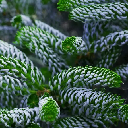 Eine langsam wachsende Tanne mit Nadeln, die einen attraktiven grün-silbrigen Kontrasteffekt erzeugen.