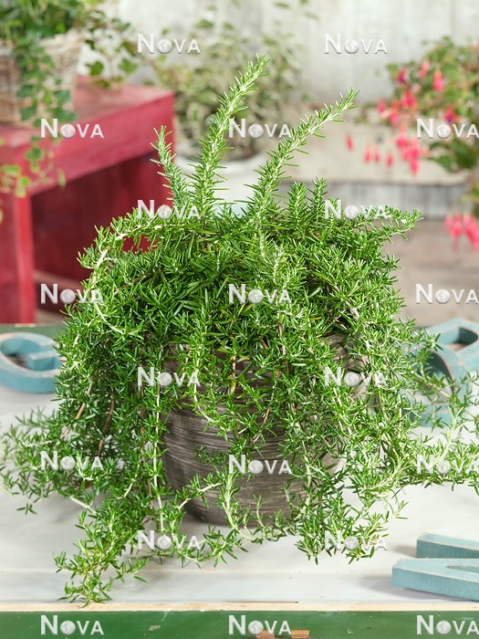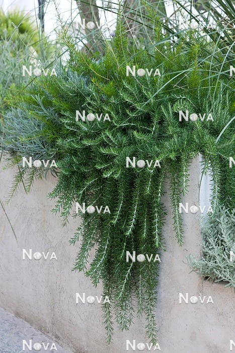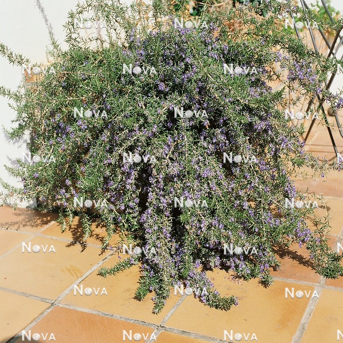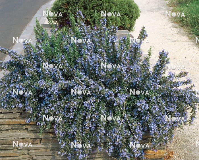 Eigenschaften: Der kriechende Rosmarin ´Prostratus´ zeichnet sich durch eine überhängende Krone mit linearen silbergrünen Blättern aus. Die Sorte blüht mit leuchtend blau-lila Blüten. Rosmarin wird in der Küche vor allem zum Würzen von Fleisch, Fisch und Kartoffeln verwendet.