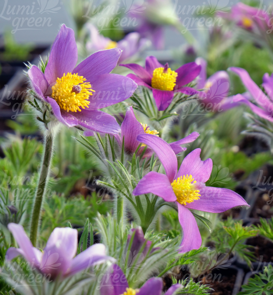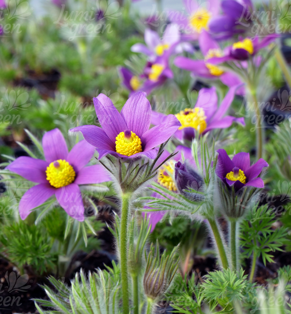 Eigenschaften:Poniklec gehört zu den unteren Steinpflanzen mit charakteristischen lavendelvioletten Blüten, die in der Mitte gelbe Staubblätter tragen. Die schmalen grünen Blätter sind weich, hellgrün mit silbernen Haaren. Sie blüht gleich zu Beginn des Frühlings, im März bis April. Je älter die Pflanze ist, desto mehr Blüten produziert sie.