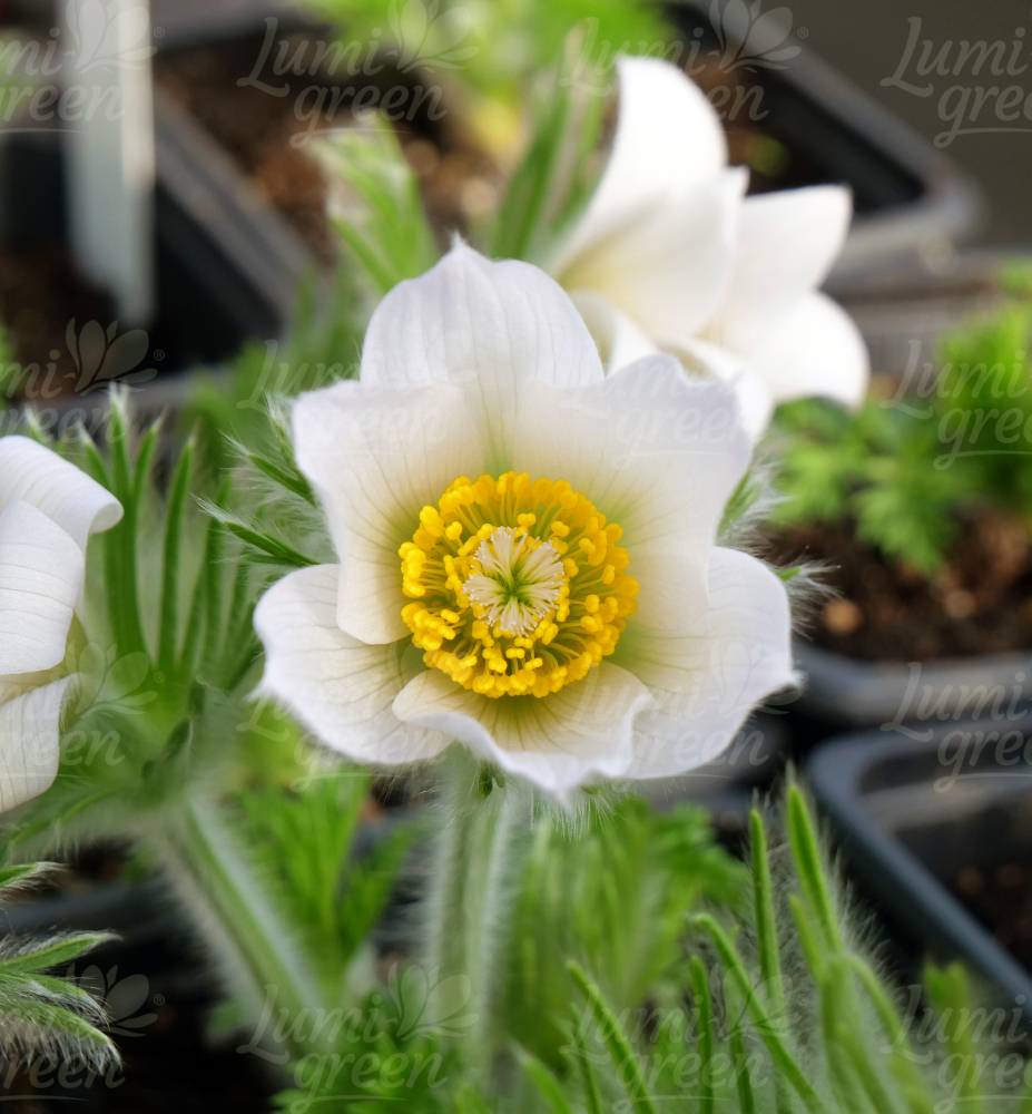 | Botanischer Name | Pulsatilla vulgaris ´Pinwheel White´ |