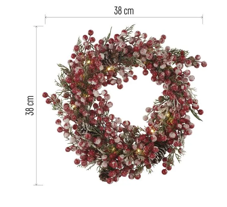 LED-Weihnachtskranz, 38 cm, 20 LEDs, 3xAA, innen, warmweiß, Timer
