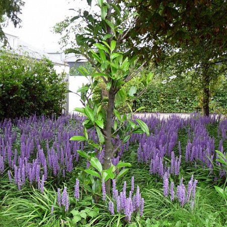 Eigenschaften: Lilientraube ist eine sehr schöne immergrüne Bodendeckerstaude. Die Sorte ´BIG BLUE´ hat dunkelgrüne herabhängende Blätter. Von August bis November blüht es mit violetten zylindrischen Ähren. Die Blüten wachsen aufrecht an kurzen Stielen. Sie wird 40-50 cm hoch und bildet einen kompakten Haufen. Lilientraube wird zur Bepflanzung zwischen Bäumen, zur Begrenzung und Einfassung von Blumenbeeten, Wegen oder zur Einfassung von Gras- und Blumenflächen verwendet. Dank seines schnellen Wachstums eignet es sich ideal zum Zeichnen von Formen im Garten. Lilientraube verfügt über ein dichtes Wurzelsystem und wird daher zum Pflanzen an steilen, schattigen Hängen verwendet, wo es den Boden stabilisiert, das Wachstum von Unkraut unterdrückt und kein Mähen erfordert.