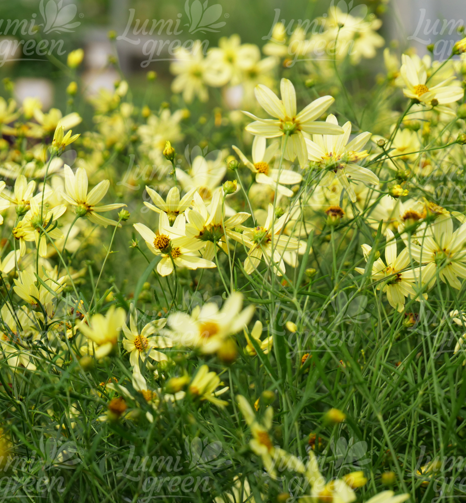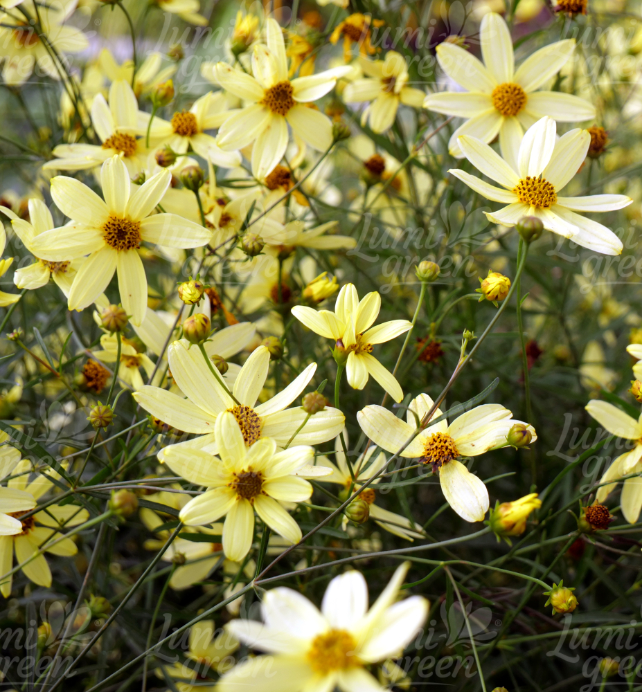 Eigenschaften: Das Mädchenauge ´Moonbeam´ ist eine neue Sorte, die durch ihre kompakte Wuchsform und ihre ungewöhnliche Blütenfarbe besticht. Die Blüten sind hellgelb bis cremegelb und erreichen einen Durchmesser von 3–5 cm. Diese Sorte blüht den ganzen Sommer über reich und nahezu ununterbrochen.Die Blätter sind dunkelgrün, schmal und gefiedert. Die Pflanze erreicht eine Höhe von 40–50 cm. Mit ihrer eleganten Erscheinung eignet sich diese Staude hervorragend für gemischte Staudenbeete. In Gruppenpflanzungen bildet sie eine wunderschöne Einfassung entlang von Wegen, Blumenbeeten oder Rasenflächen.