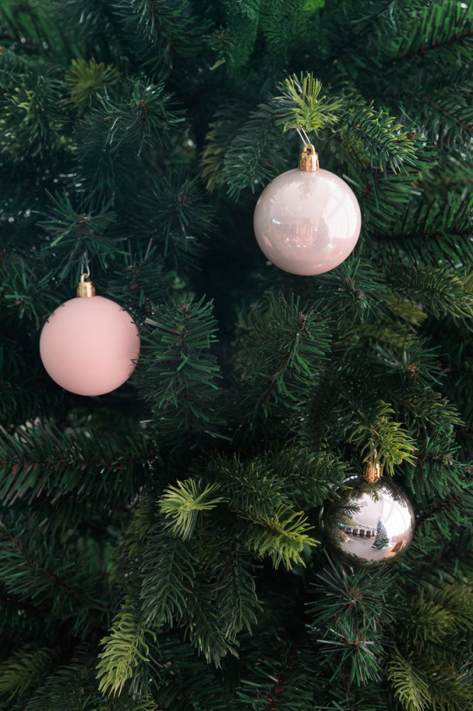 Ein Set Weihnachtsdekorationen in einem zarten Rosaton.