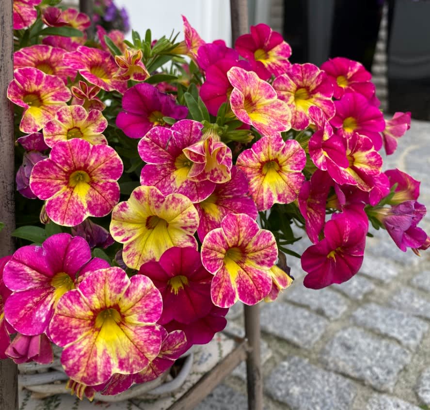 Mini-Petunien der ´CHAMELEON‘ - Kategorie zeigen Blüten, deren Farbe sich im Laufe der Wachstumsperiode und je nach Witterung verändert. Dank ihres überhängenden Wuchses eignen sie sich ideal für Ampeln. Sie blühen den ganzen Sommer über ununterbrochen.