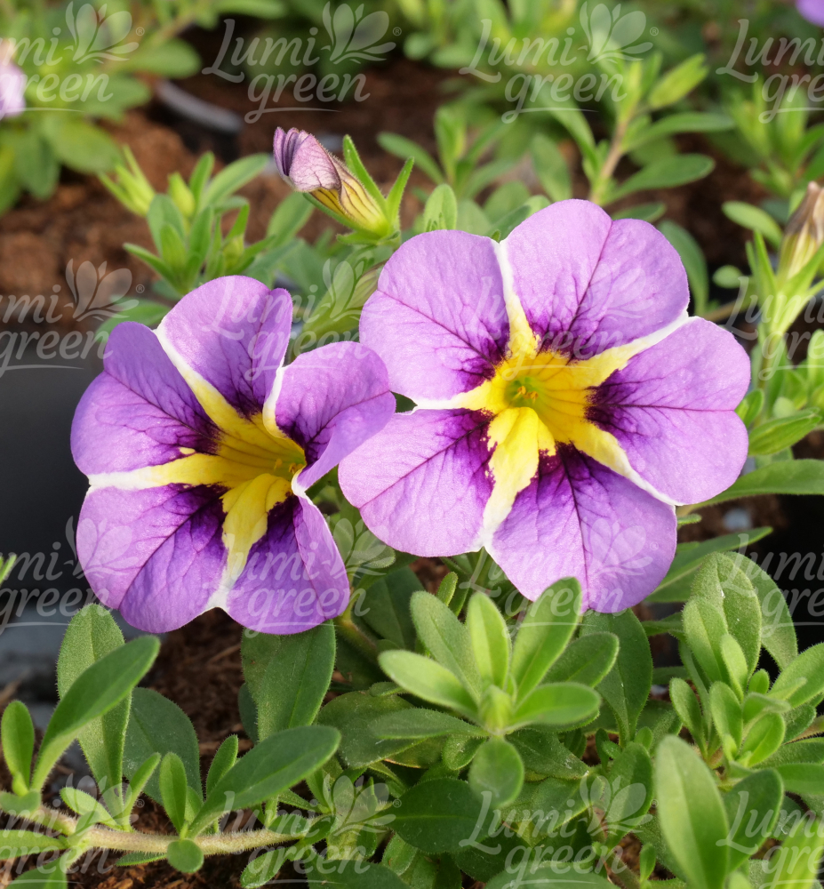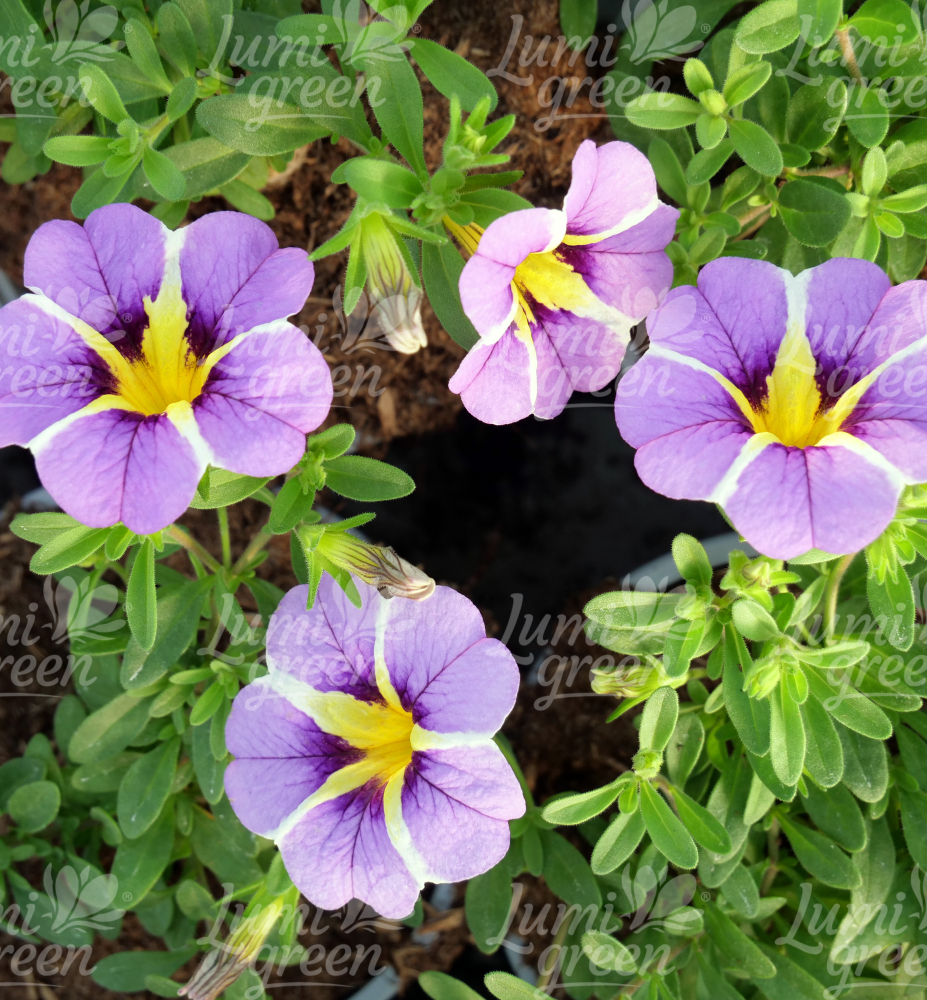 Attraktive Mini-Petunie mit halbzwergigem Wuchs und zart violett gefärbten Blüten.