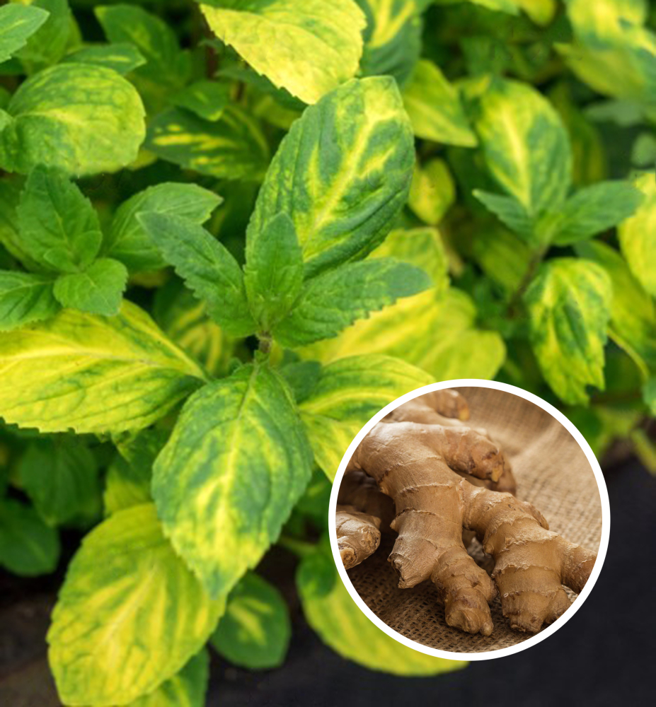 Eigenschaften: Ingwerminze gehört aufgrund ihrer bunten Blätter zu den nicht-traditionellen Arten. Die Blätter sorgen für einen erfrischenden Menthol-Ingwer-Geschmack. Im Sommer blüht es mit leuchtend lavendelvioletten Blüten. Sie wird 30–50 cm hoch.