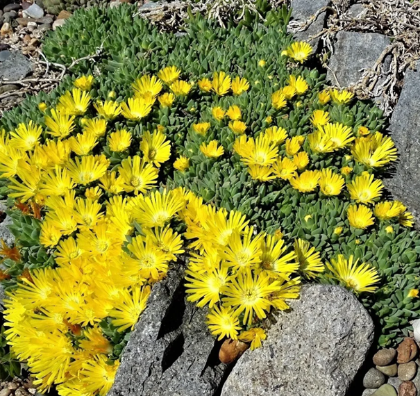 Eine attraktive und unübersehbare Steingartenpflanze mit leuchtend gelben Blüten.