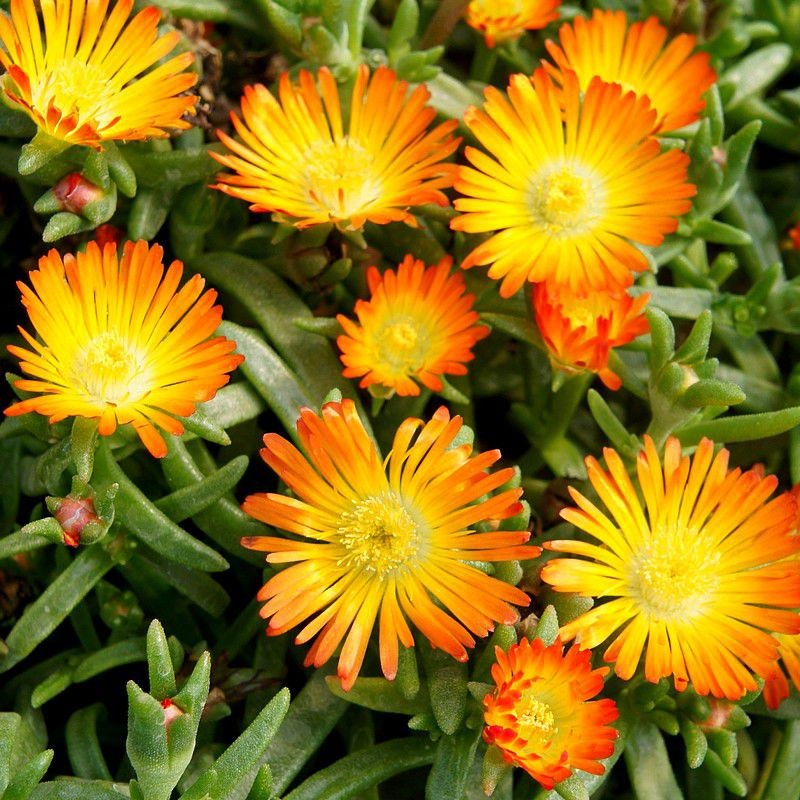 Eigenschaften: Mittagsblume ist eine bodendeckende und schnell wachsende Steinpflanze. Die Sorte „Orange Wonder“ zeichnet sich durch unverwechselbare orange-gelbe Blüten aus. Die Blätter sind fleischig, grün gefärbt und ähneln einem Kaktus. Es ist frostbeständig bis -20°C. Die Pflanze eignet sich zur Anpflanzung in Steingärten und an Beeträndern.