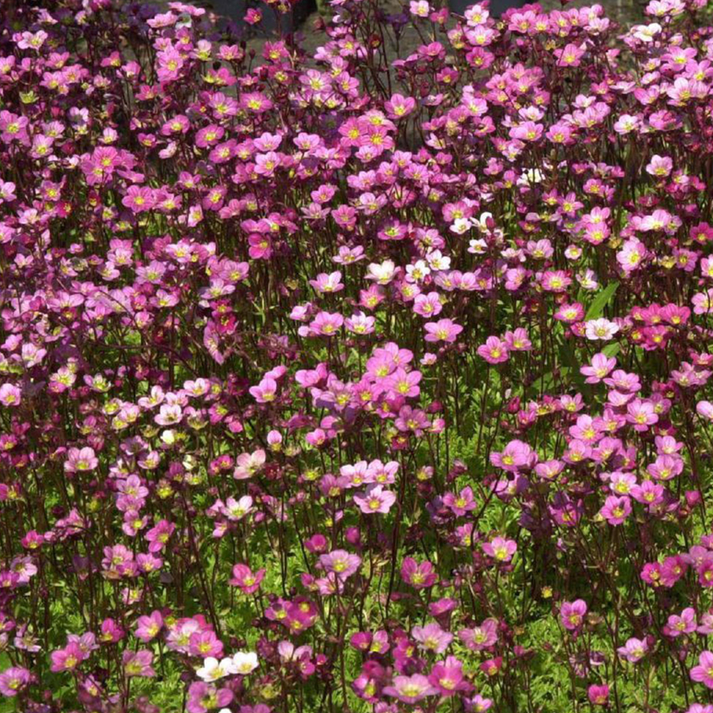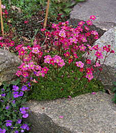 Eine bodendeckende Steinpflanze mit einer Fülle rosa-karminroter Blüten.