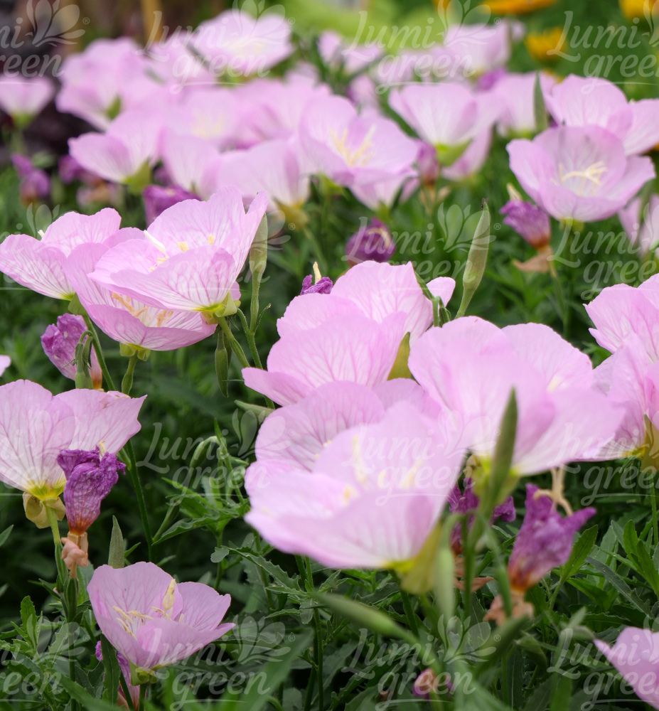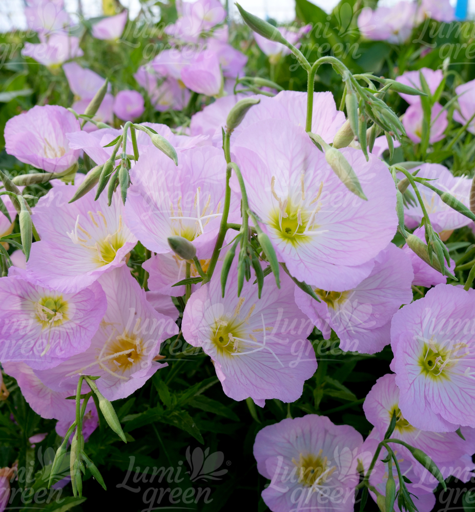 Eigenschaften: Nachtigall kommt hauptsächlich aus Nordamerika, selten auch aus Südamerika. Diese Gattung umfasst etwa 200 Arten, die sich durch unterschiedliche Höhen, Blattformen und Blütenfarben voneinander unterscheiden. Die Nachtkerze „Siskiyou Pink“ ist eine ca. 30 cm hohe Staude, die als mehrjähriger Bodendecker verwendet wird. Es zeichnet sich durch schmale, tiefgrüne, lanzenförmige Blätter an langen Trieben aus. Die Farbe der Blätter wechselt im Herbst zu Rot. Sie blüht von Juni bis August mit rosa Blüten.