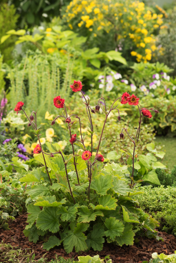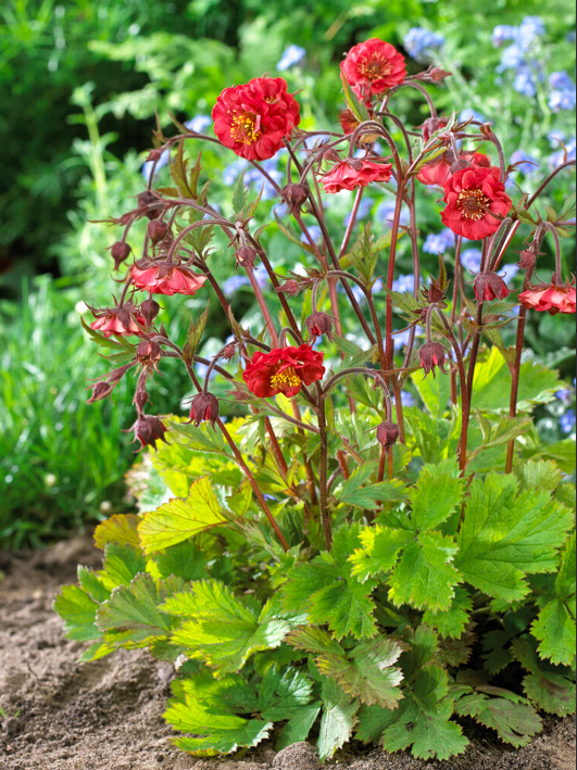 Eigenschaften: Die Nelkenwurz ´FLAMES OF PASSION®´ ist eine niedrige Nelkenwurzsorte, die nur eine maximale Höhe von 50 cm erreicht. Die Blätter haben einen gezackten Rand und sind hellgrün gefärbt. Sie zeichnet sich besonders durch ihre satten roten Blüten aus, die an aufrechten Stielen wachsen. Es eignet sich für den Anbau in gemischten Staudenbeeten.