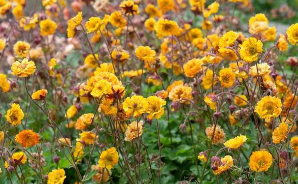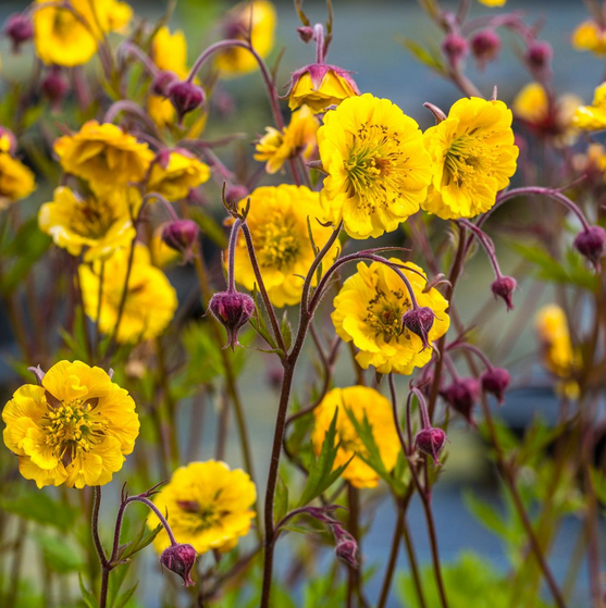Neue Sorte der Nelkenwurz mit kompaktem Wuchs und zahlreichen halbgefüllten gelben Blüten.