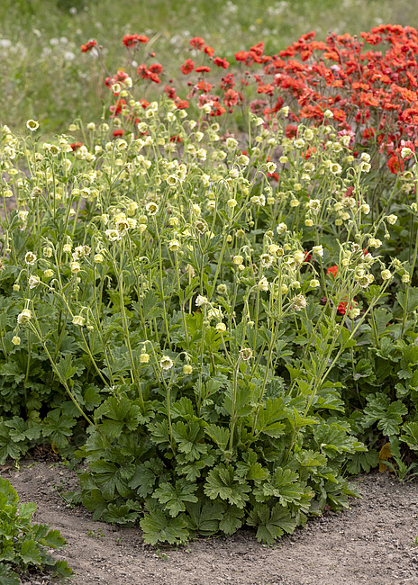 Eine begehrte und geschätzte Nelkenwurz mit großen hellgelben Blüten.