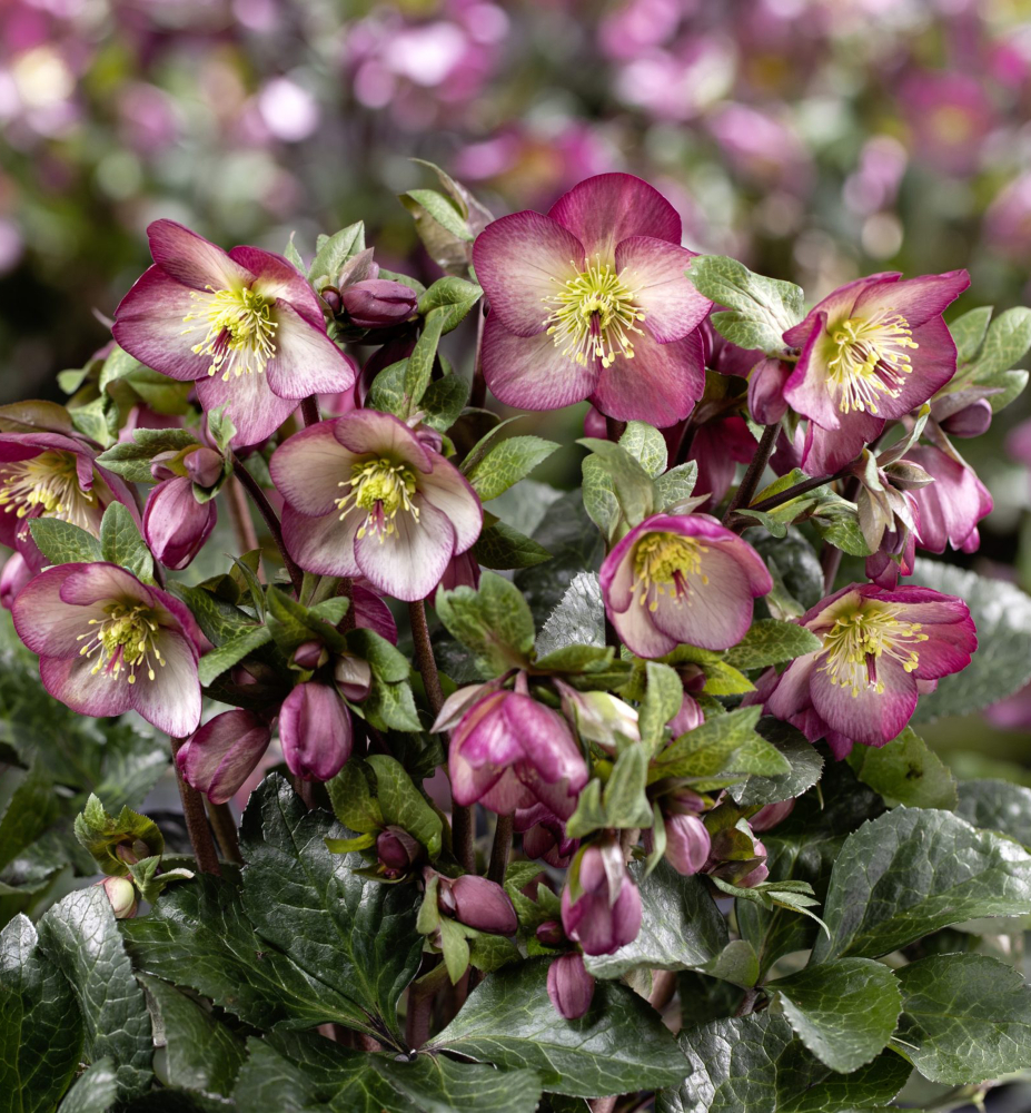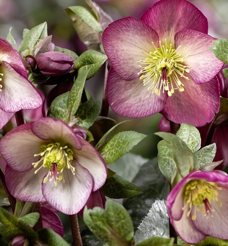 Eigenschaften: Die Nieswurz 'ICE N' ROSES® MACY MARBLE' ist eine auffällige Sorte, die mit ihren großen cremeweißen Blüten mit markantem rosa Rand auf den ersten Blick ins Auge fällt. Die Blüten erscheinen ab Februar und bleiben bis zum Frühsommer an der Pflanze. Sie wird 40-60 cm hoch und bildet kompakte Büschel dunkelgrüner, ledriger Blätter mit elegantem Marmoreffekt, der der Pflanze ein einzigartiges Aussehen verleiht.