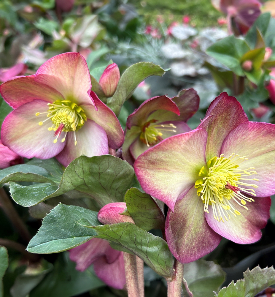 Eigenschaften: Die Nieswurz 'ICE N' ROSES® ROSALI' ist eine äußerst dekorative Sorte, die ab Januar blüht. Die Blütenfarbe variiert leicht – ein charakteristisches Merkmal dieser Serie. Beim Aufblühen zeigen sich die Blütenblätter in einem zarten Hellrosa bis Porzellanrosa mit einem helleren, fast weißen Zentrum. Mit zunehmender Reife intensiviert sich die Färbung zu einem tieferen Rosa, bevor die Blüten später auch hellgrüne Schattierungen annehmen. Die dunkelgrünen, ledrigen Blätter bilden einen dichten Horst und bleiben während der gesamten Vegetationsperiode dekorativ.
