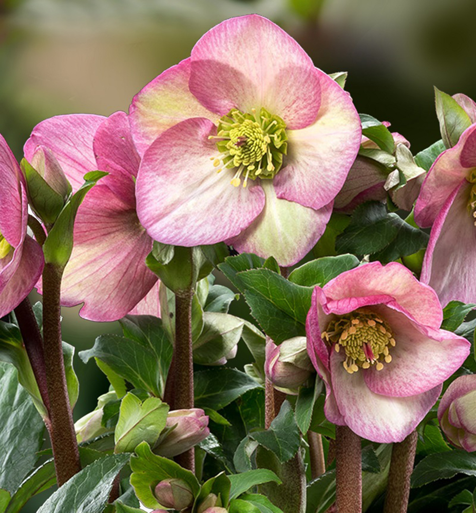Eigenschaften: Die Christrose 'ICE N' ROSES® ROSE' verschönert seit Januar jeden Garten. Diese üppig blühende Schönheit bringt cremefarbene Blüten mit einem zarten Grünstich hervor. Die zarte Grundfarbe wird durch einen unregelmäßigen Rosaton gemildert. Sie erreicht eine Höhe von 50–60 cm und bildet dichte Horste aus dunkelgrünen, ledrigen Blättern.