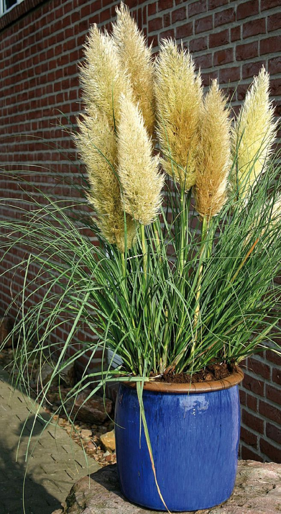 Anbau: Pampasgras ist pflegeleicht, bevorzugt eher trockenen Boden und einen sonnigen Standort. Im Herbst sollte es nicht geschnitten, sondern der gesamte Horst zusammengebunden werden, um einen besseren Winterschutz zu gewährleisten. Im Frühjahr kann der Horst etwa 15–20 cm über dem Boden zurückgeschnitten werden, um die Bildung neuer Blätter zu fördern. Es ist eine ausgezeichnete Ziergartendominante und kommt sowohl als Solitär im Rasen als auch als hohe, grüne Wand besonders gut zur Geltung.