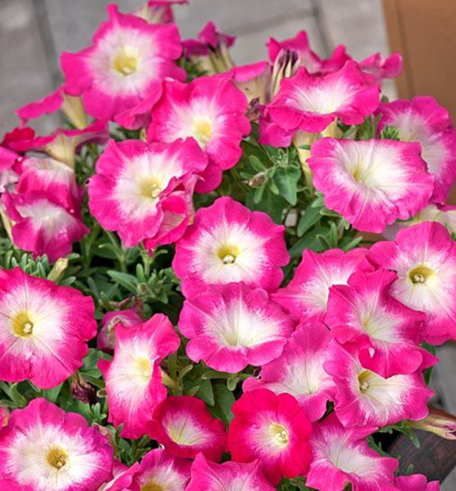 Petunien der 'CASCADIAS®'- Gruppe bilden kaskadenartige, überhängende Blüten und sind äußerst windfest. Die üppige Blüte hält den ganzen Sommer über an.