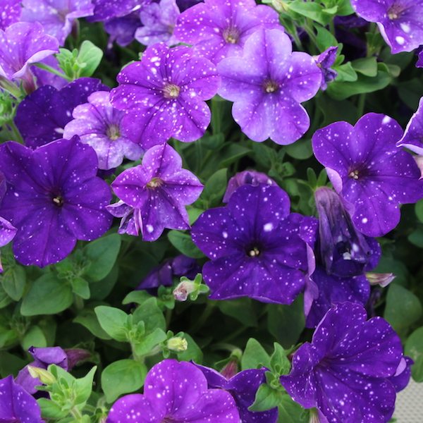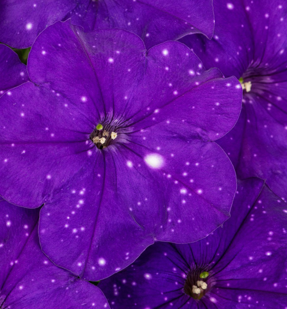 Eigenschaften: Die Sorte ´CONSTELLATION VIRGO‘ ("Sternbild Jungfrau") ist eine einzigartige Surfinie mit markantem Sterneffekt. Ihre dunkelvioletten Blüten sind dicht mit winzigen hellen Punkten übersät, sodass jede Blüte ein Unikat ist. Die Pflanze wächst kräftig und überhängend, verzweigt sich schnell und bildet dichte, üppig blühende Überhänge, die sofort ins Auge fallen.