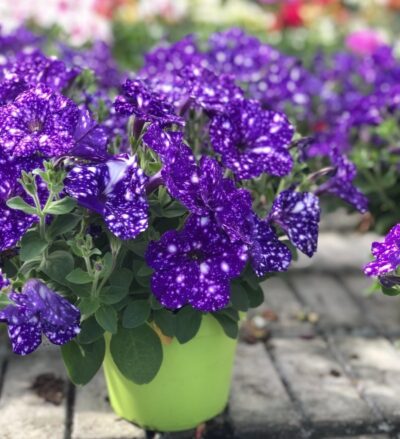 Eine einzigartige Petunie mit dunkelvioletten Blüten, die an den Nachthimmel erinnern.