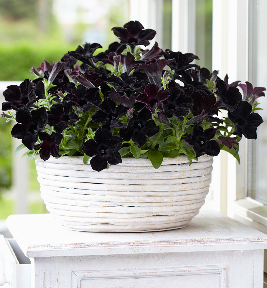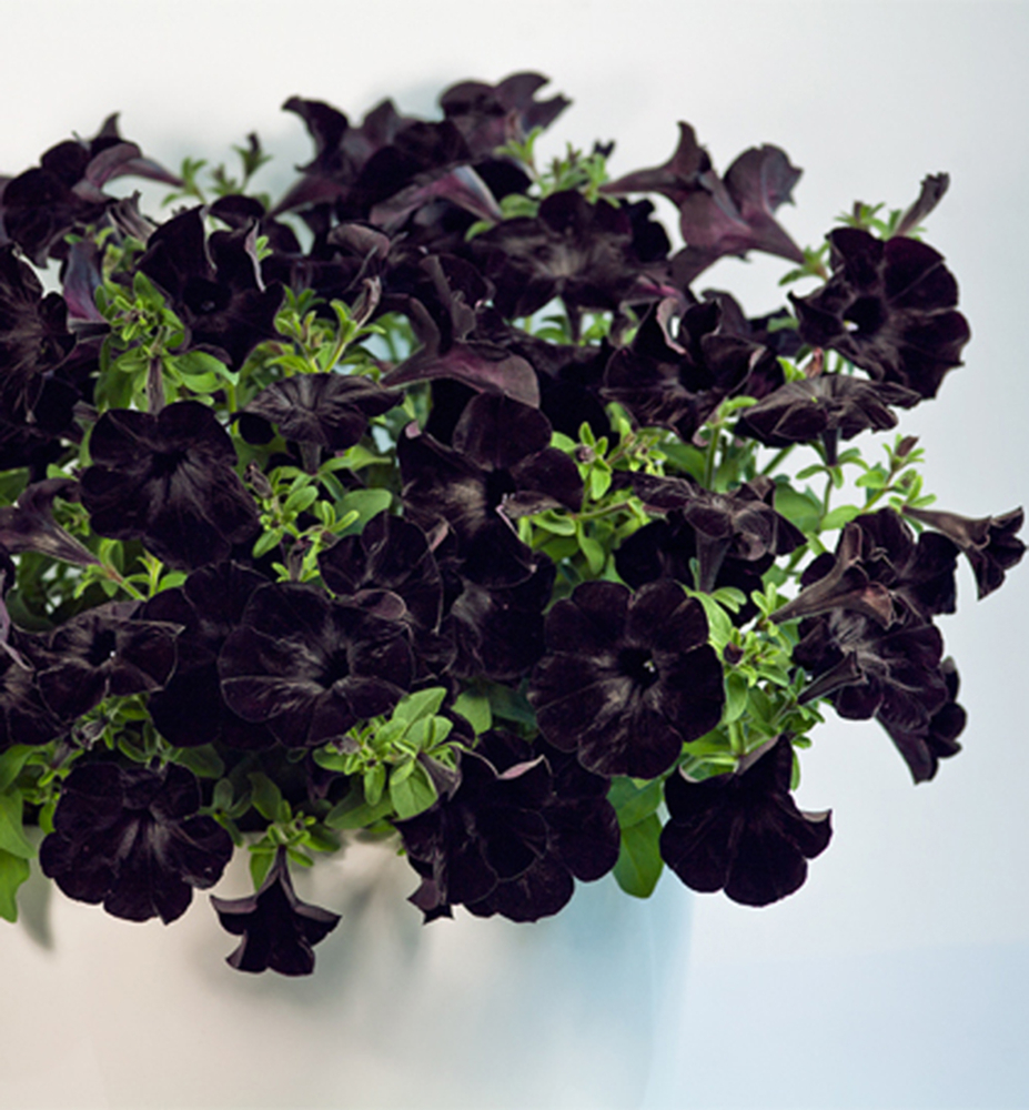 Eigenschaften: Die schwarzen Blüten der Sorte ´CRAZYTUNIA® BLACK MAMBA‘ wirken im Topf modern und exotisch. Sie besitzen eine samtige Oberfläche und schimmern in der Sonne violett.