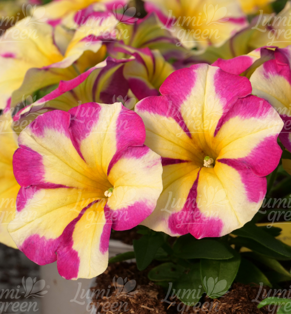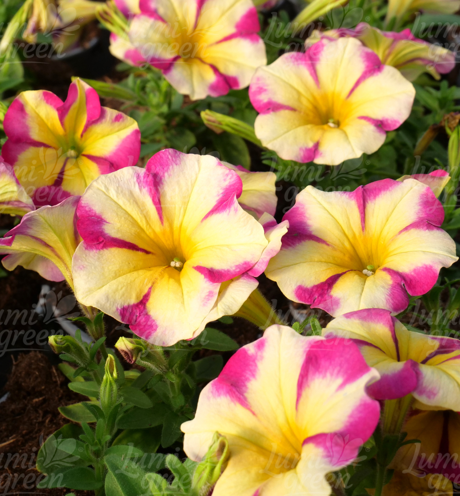 Petunien der ´CRAZYTUNIA®‘- Kollektion zeichnen sich durch außergewöhnliche Farbkombinationen großer Blüten aus. Sie wachsen aufrecht, haben kräftige Stängel und vertragen höhere Temperaturen sehr gut. Diese Sorte eignet sich ideal für Hängeampeln und gemischte Pflanzungen.