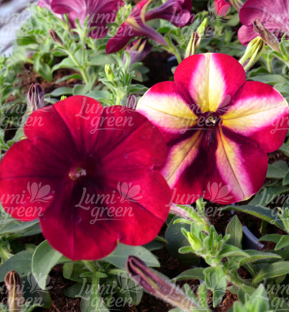 Petunien der ´CRAZYTUNIA®‘- Kollektion zeichnen sich durch außergewöhnliche Farbkombinationen großer Blüten aus. Sie wachsen aufrecht, haben kräftige Stängel und vertragen höhere Temperaturen sehr gut. Diese Sorte eignet sich ideal für Hängeampeln und gemischte Pflanzungen.