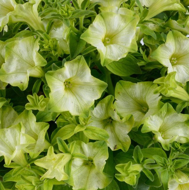 Eigenschaften: Die Petunie ´RAY® PISTACHIO CREAM‘ wächst halbüberhängend bis überhängend. Ihre ungewöhnlichen zweifarbigen Blüten verbinden Weiß und Pistaziengrün und erzeugen zusammen mit den hellgrünen Blättern einen kompakten, dekorativen Eindruck.
