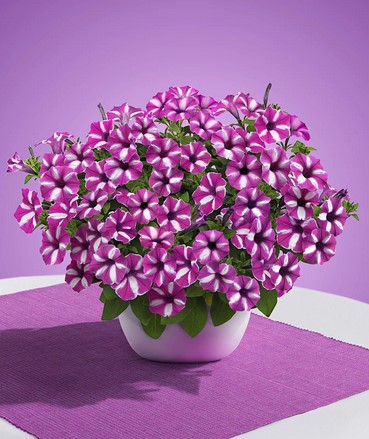Die ´SUPERTUNIA® VISTA´-Serie ist bekannt für kräftiges Wachstum, üppige und langanhaltende Blüte sowie markante Blütenfarben. Die Pflanzen wachsen halbzwergwüchsig bis hängend und sind resistent gegen Hitze, Trockenheit und gängige Krankheiten.