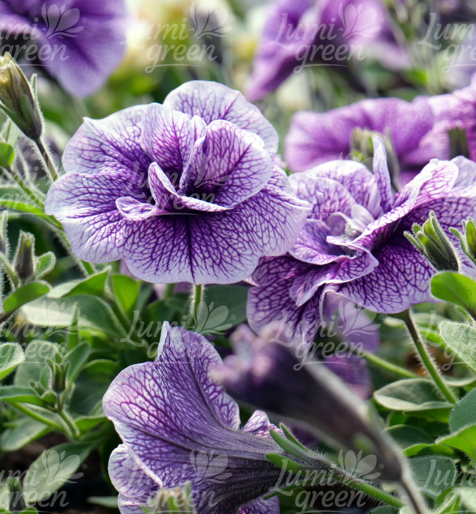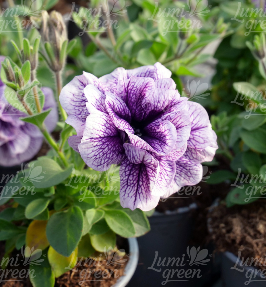 Eigenschaften: Die Petunie ´TUMBELINA® PRISCILLA‘ bildet an überhängenden Trieben unverwechselbare, volle Blüten mit gewellten Blütenblättern. Die Blüten sind hellviolett gefärbt und zeigen markante dunkelviolette Adern. Ihre perfekte Schönheit wird durch einen angenehmen Duft ergänzt, der an sonnigen Standorten besonders intensiv wahrnehmbar ist.